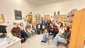 27 listopada 2025 r. w szkolnej bibliotece odbyło się wyjątkowe spotkanie autorskie z Panem Pawłem Kołodziejskim – poetą, autorem tomików „Pejzaż introwersyjny”, „Szklana dłoń”, „Koniec sezonu” oraz dyrektorem Muzeum Przyrody i Techniki w Starachowicach. Wydarzenie było zwieńczeniem projektu „Cudze chwalicie, swego nie znacie”, którego celem było przybliżenie młodzieży twórczości