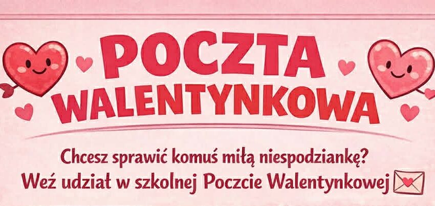 Samorząd Uczniowski zaprasza do udziału w Poczcie Walentynkowej! Wszystkie szczegóły znajdziecie na plakacie poniżej. Zapraszamy do wspólnej zabawy!