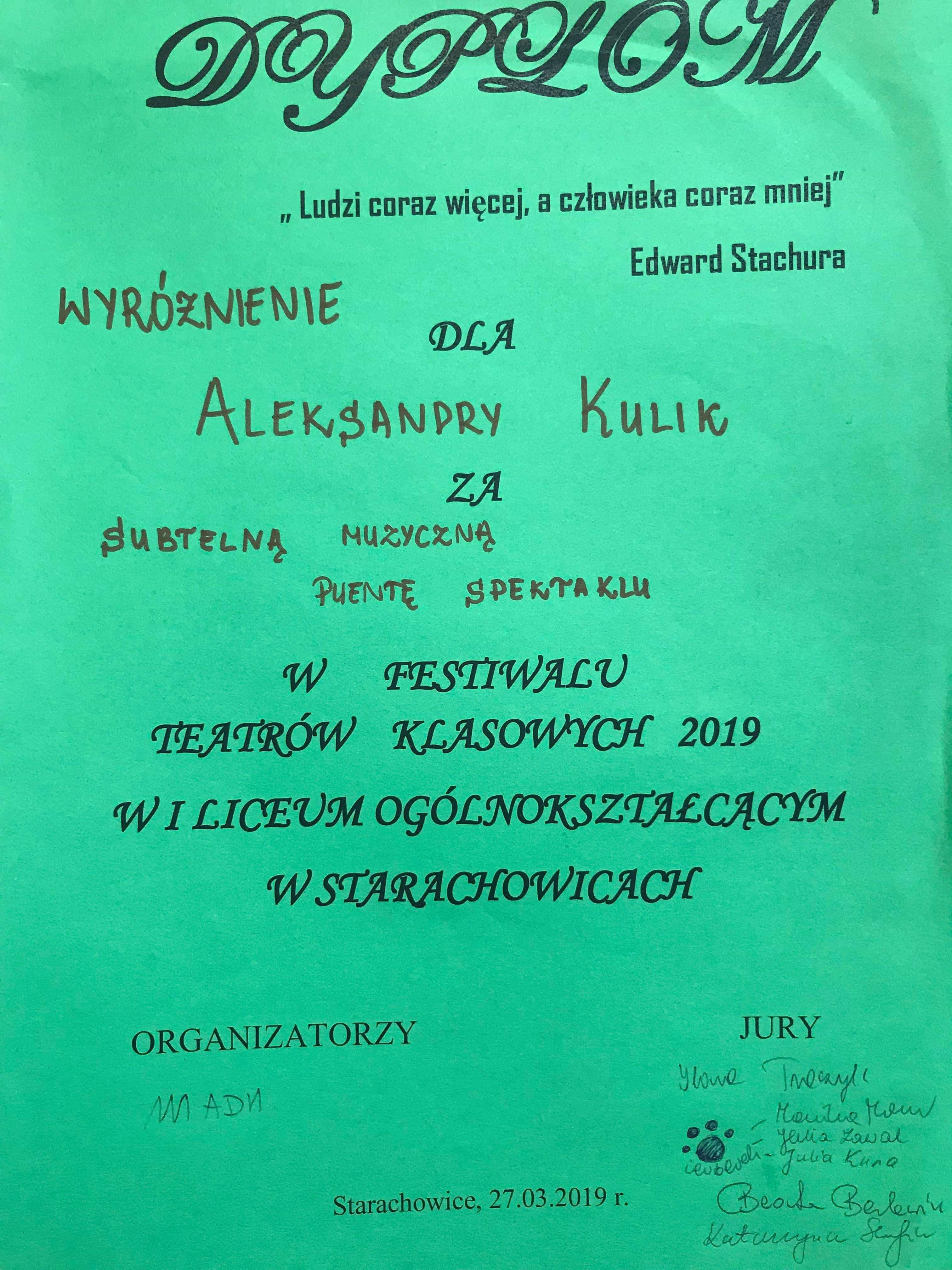 Aleksandra Kulik i Natalia Maciąg otrzymały również dyplomy za szczególne zaangażowanie w powstawanie występu.