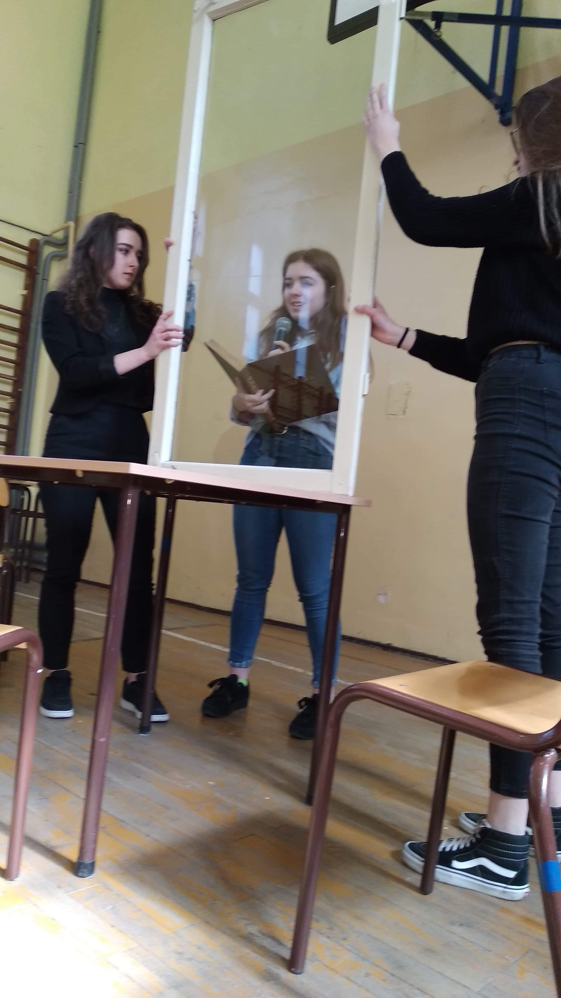 Naszym tematem przewodnim było słowo: GDZIEKOLWIEK. Przedstawiliśmy to w kontekście tego, jak wielki wpływ ma na nas, ludzi, postęp technologiczny. W prawie każdej codziennej sytuacji naszym towarzyszem jest telefon komórkowy.