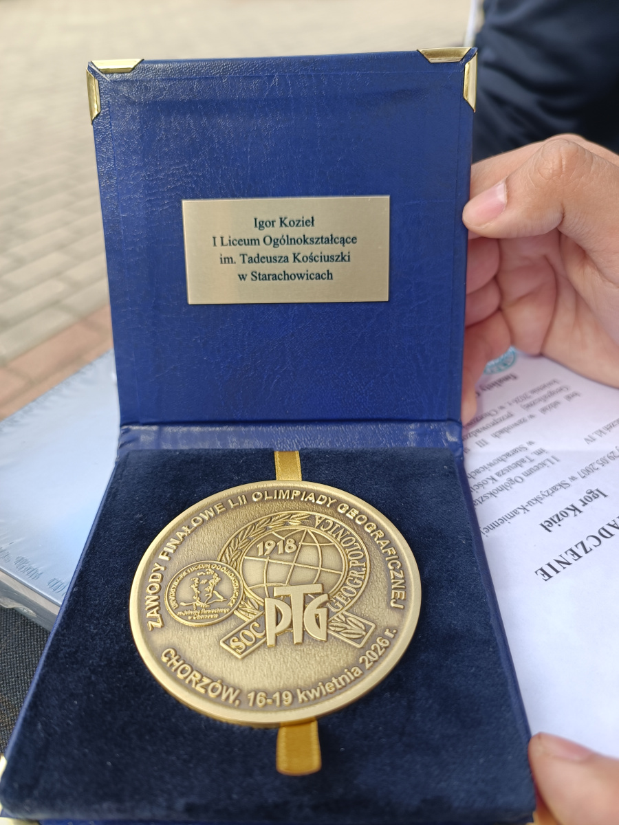 W dniach 16 – 18 kwietnia Igor Kozieł – uczeń pani Anity Bernatowicz uczestniczył w zawodach finałowych LII Olimpiady Geograficznej, które zgromadziły w Chorzowie najlepszych młodych geografów z całej Polski.