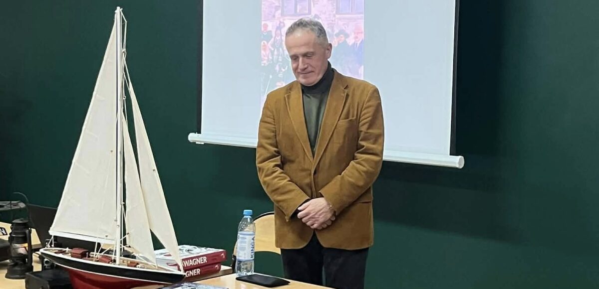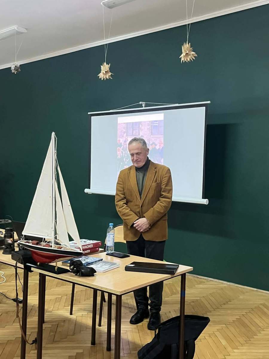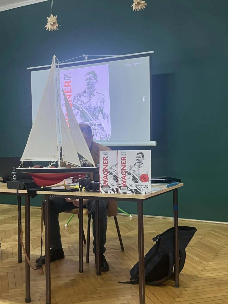 Władysław Wagner to pochodzący ze Starachowic -z Krzyżowej Woli- najwybitniejszy żeglarz, który jako pierwszy Polak opłynął świat pod żaglami Jego niezwykle trudny rejs trwał prawie 7 lat i skończył się w 1939 roku. Wybuch II wojny światowej uniemożliwił Wagnerowi powrót do Polski. O tym niezwykłym bohaterze, żeglarzu i harcerzu, wiernemu do końca Rzeczypospolitej, opowiadał naszym uczniom autor jego biografii, historyk i dziennikarz Aleksander Łącki. Książkę „Wagner. Pierwszy Polak, który opłynął świat pod żaglami”, można kupić w starachowickich księgarniach i w Allegro. Serdecznie polecamy i dziękujemy za inspirujące spotkanie!