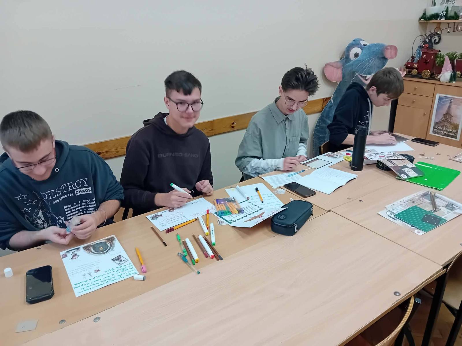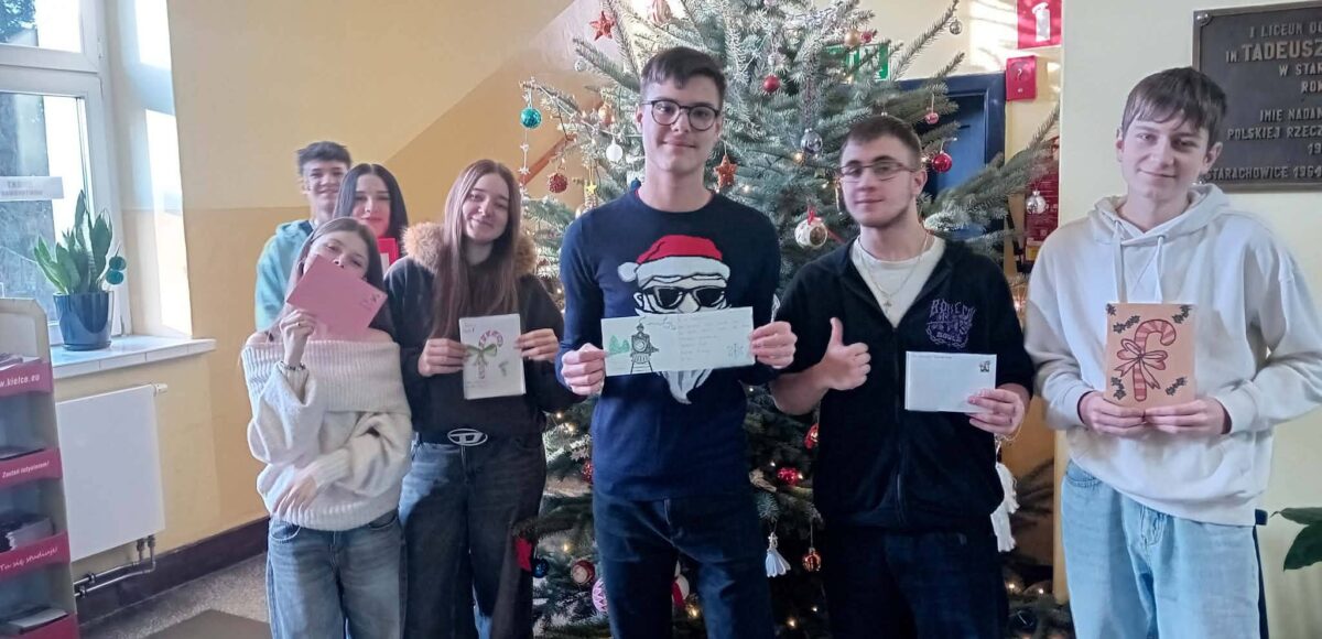 Uczniowie naszej szkoły wzięli udział w wyjątkowej akcji wymiany kartek świątecznych z uczniami III Liceum Ogólnokształcącego im. Władysława Broniewskiego w Ostrowcu. Przez cały tydzień z entuzjazmem tworzyli własnoręczne kartki, zapisując na nich świąteczne życzenia w języku francuskim.